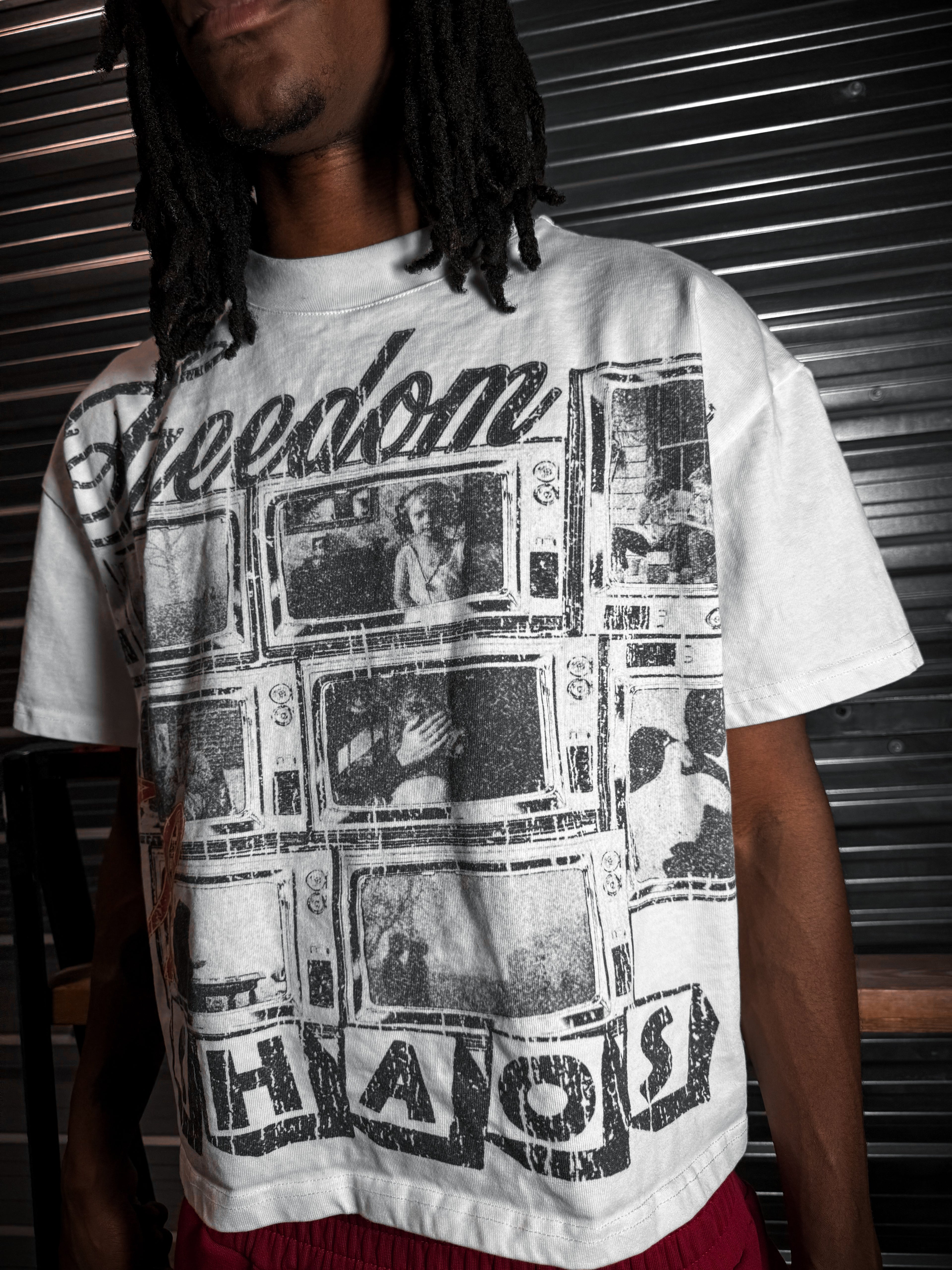 FLESH DESIRES TEE - 300 GSM, White tee. Features a DTG printed design all across the front of the tee.